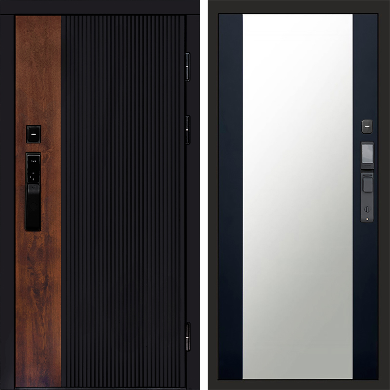 Входная дверь Termo-door ПРЕСТИЖ с электронным замком Зеркало Черный Кварц+Тонировка