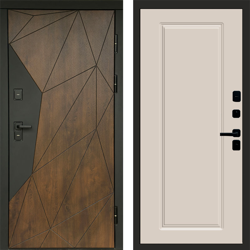 Входная дверь Termo-door Премиум винорит Геометрия Дуб с терморазрывом - Гранд Слоновая кость