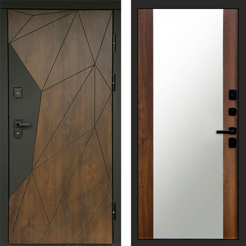Входная дверь Termo-door Премиум винорит Геометрия Дуб с терморазрывом - Зеркало Дуб