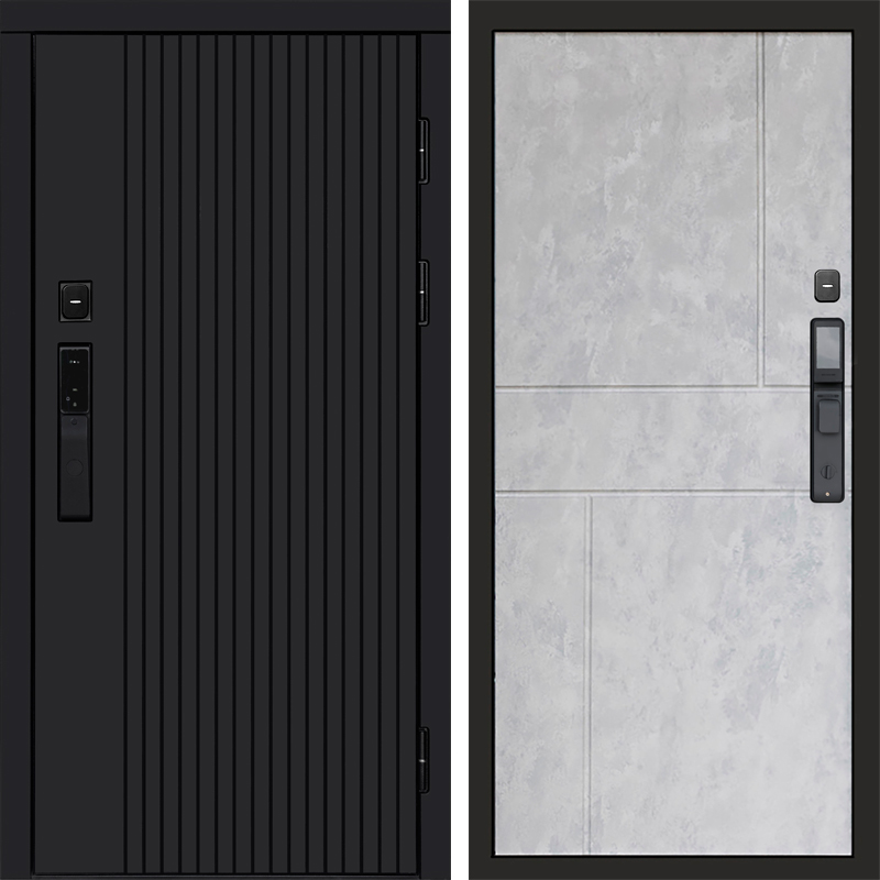 Входная дверь Termo-door ТВИСТ BLACK с электронным замком Горизонт бетон светлый