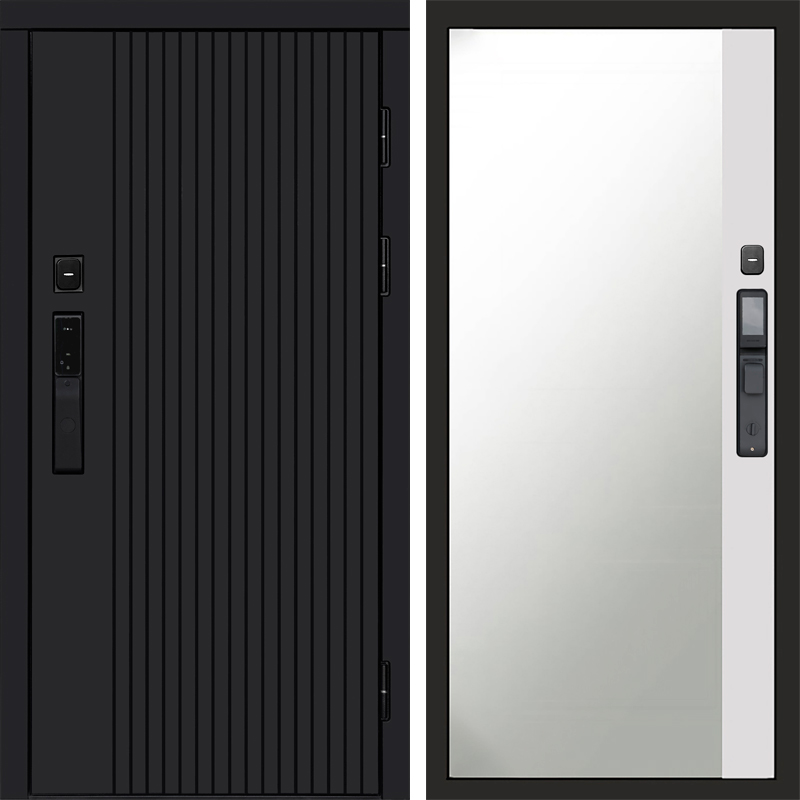 Входная дверь Termo-door ТВИСТ BLACK с электронным замком Широкое Зеркало Фацет Белый Софт