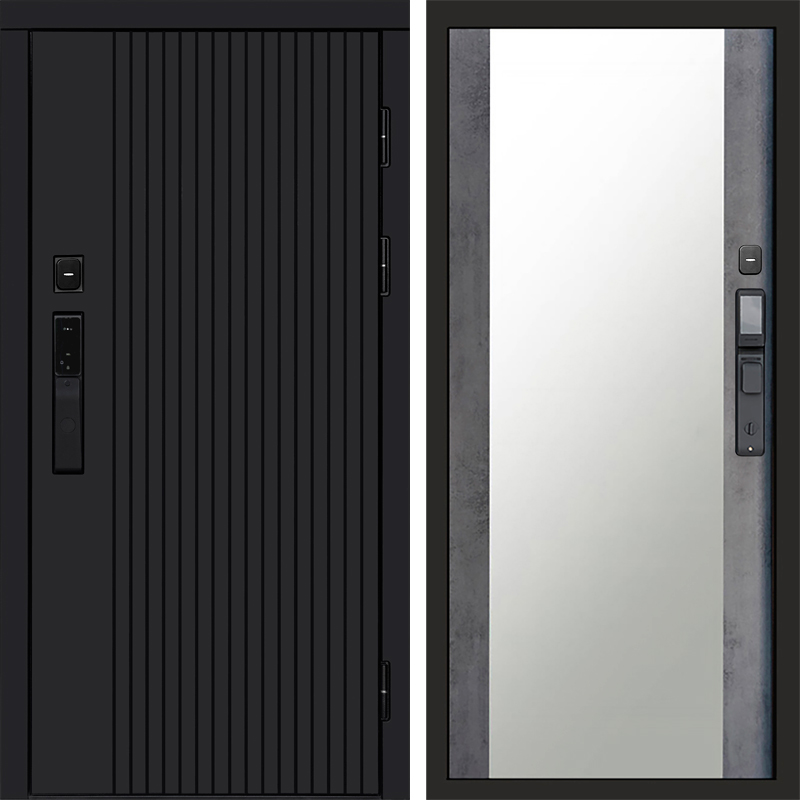 Входная дверь Termo-door ТВИСТ BLACK с электронным замком Зеркало бетон темный
