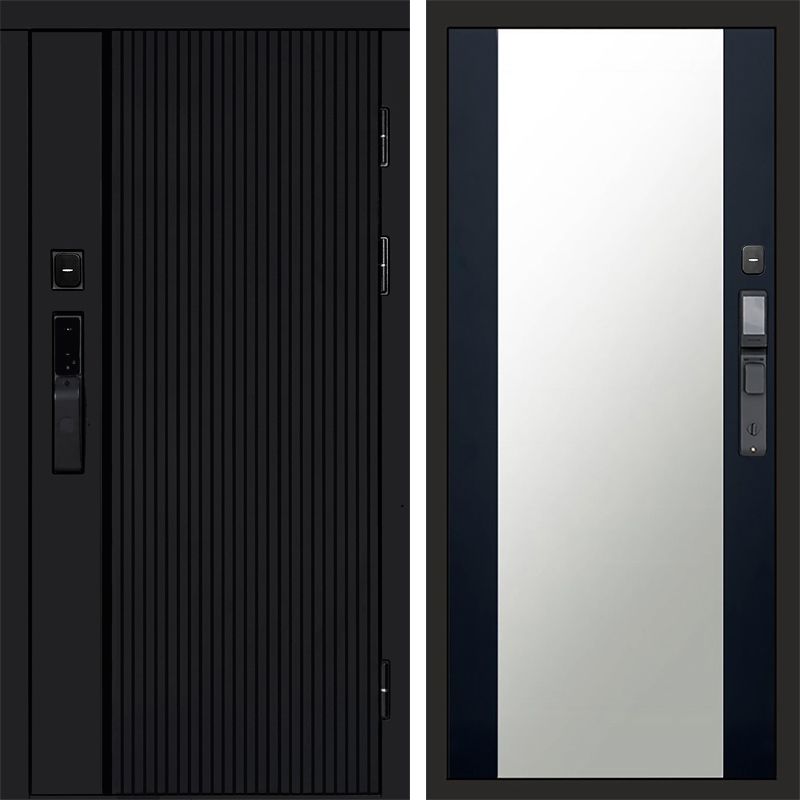 Входная дверь Termo-door УРБАН BLACK с электронным замком Зеркало Черный Кварц+Тонировка